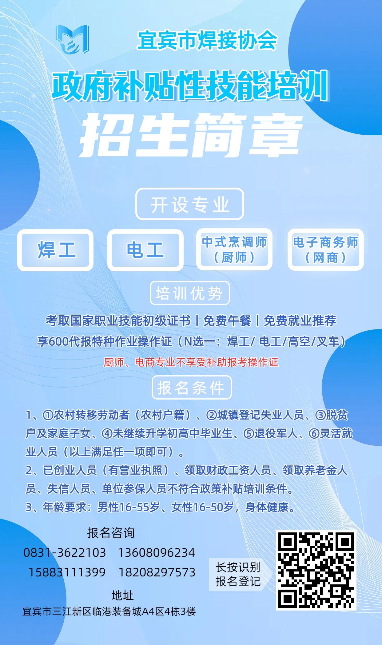 宜宾市企业职工(含临时聘用、劳务派遣)定向免费培训报名通知